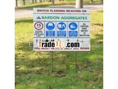 Aluminum is a great choice for outdoor signs. It comes in a varietyof colors by silkscreen printing.